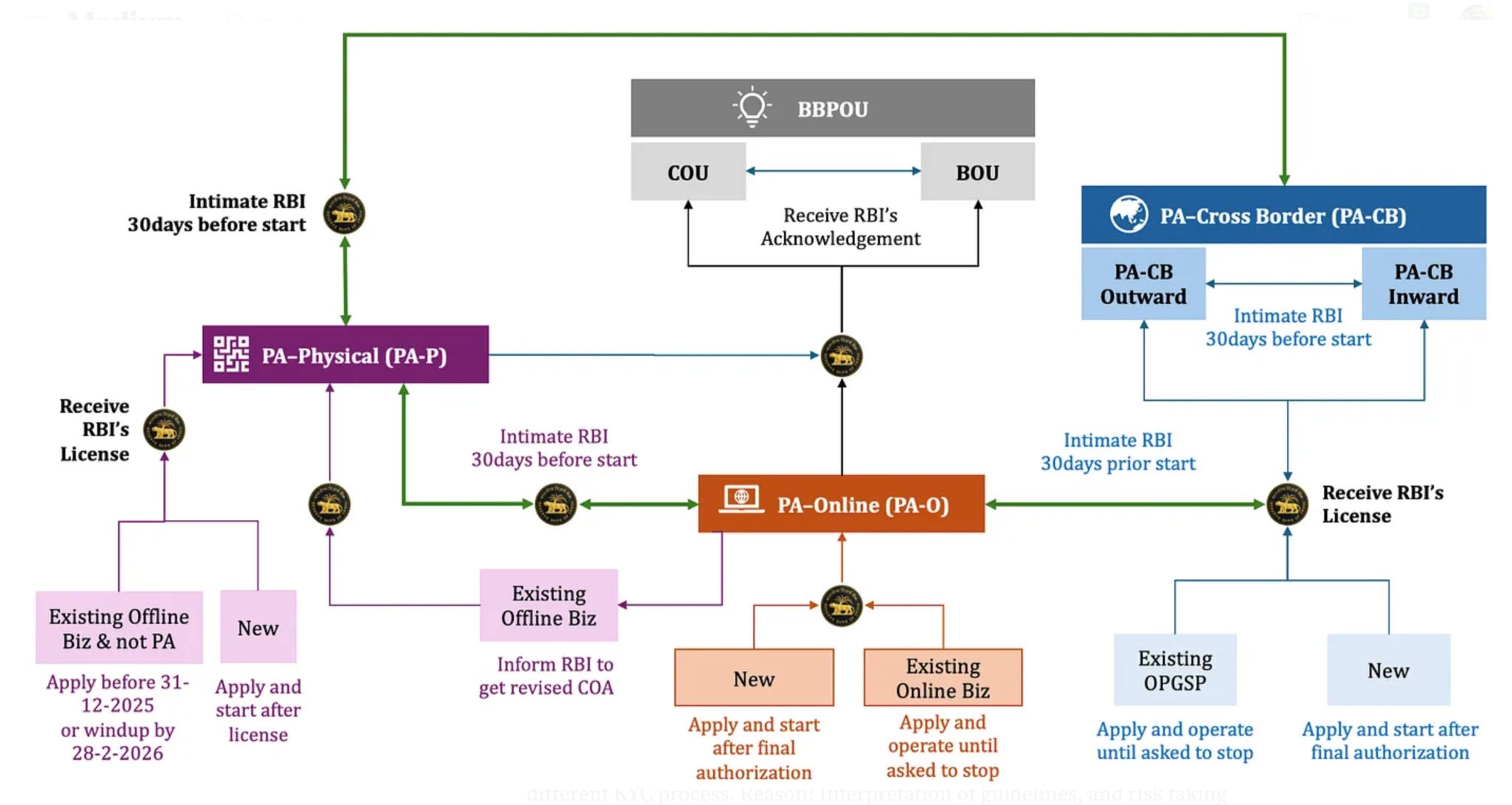 E.g. If an entity is holding PA-O license then it can intimate RBI its intention to start PA-Cross Border (inward/outward/both). RBI will issue a new authorization letter.